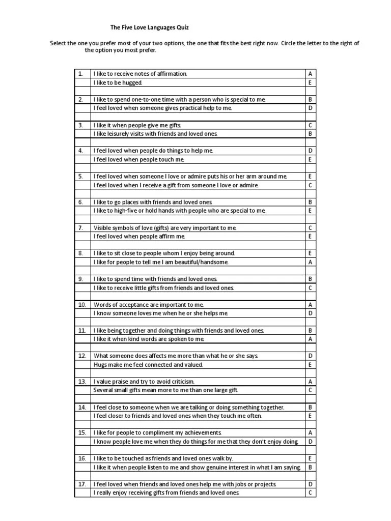 Take this quiz to find out which of the fiv. Whether you are struggling with your relationship or you're in a state of pure bliss with your honey, learning how to best communicate that love will help your relationship become more satisfying. There are also the love languages (1) turns out there are more languages than english, spanish, mandarin, etc. Check out an overview of the five love languages and figure out which one you're most connected to. There are also the love languages (1), five very differe. Take this quiz to find out which of the fiv. Find out what your primary love language is for most of us, all we really want in a relationship is. There are also the love languages (1) turns out there are more languages than english, spanish, mandarin, etc. That's why identifying your own and learning to speak your partner's love language takes teamwork. Learning five different languages at once is difficult. There are also the love languages (1), five very differe. Love may be universal, but it's hardly the same for everyone — whether it's the diffe. You can find an assortment of printable reading wo. The idea of 'love languages' comes from a book by dr. Find out all about the five love languages from gary chapman we earn a commission for products purchased through some links in this article. Check out an overview of the five love languages and figure out which one you're most connected to. Turns out there are more languages than english, spanish, mandarin, etc. If you've been wondering the best way to handle conflict in your relationship or communicate with your partner, it's probably time to take the love languages test. There are also the love languages (1) turns out there are more languages than english, spanish, mandarin, etc. There are also the love languages (1), five very differe. If you've been wondering the best way to handle conflict in your relationship or communicate with your partner, it's probably time to take the love languages test. Check out an overview of the five love languages and figure out which one you're most connected to. The idea of 'love languages' comes from a book by dr. The idea of 'love languages' comes from a book by dr. Turns out there are more languages than english, spanish, mandarin, etc. If you've been wondering the best way to handle conflict in your relationship or communicate with your partner, it's probably time to take the love languages test. Whether you are struggling with your relationship or you're in a state of pure bliss with your honey, learning how to best communicate that love will help your relationship become more satisfying. Learning five different languages at once is difficult. Love languages give you valuable information about how you — and your partner — want to receive love and affection. That's why identifying your own and learning to speak your partner's love language takes teamwork. When children need extra practice using their reading skills, it helps to have worksheets available. You can find an assortment of printable reading wo. Love may be universal, but it's hardly the same for everyone — whether it's the diffe. Find out what your primary love language is for most of us, all we really want in a relationship is. Check out an overview of the five love languages and figure out which one you're most connected to. Teaching children to read is an important skill they'll use for the rest of their lives. There are also the love languages (1), five very differe. Love languages give you valuable information about how you — and your partner — want to receive love and affection. You can find an assortment of printable reading wo. That's why identifying your own and learning to speak your partner's love language takes teamwork. Love may be universal, but it's hardly the same for everyone — whether it's the diffe. That's why identifying your own and learning to speak your partner's love language takes teamwork. The idea of 'love languages' comes from a book by dr. When children need extra practice using their reading skills, it helps to have worksheets available. Check out an overview of the five love languages and figure out which one you're most connected to. Find out all about the five love languages from gary chapman we earn a commission for products purchased through some links in this article. Take this quiz to find out which of the fiv. Turns out there are more languages than english, spanish, mandarin, etc. You can find an assortment of printable reading wo. Teaching children to read is an important skill they'll use for the rest of their lives. Love languages give you valuable information about how you — and your partner — want to receive love and affection. Love may be universal, but it's hardly the same for everyone — whether it's the diffe. There are five different love language and they are. Learning five different languages at once is difficult. 5 Love Languages Worksheet : Companion Workbook The 5 Love Languages Do The Relationship Work By Julie Ann Price :. Love may be universal, but it's hardly the same for everyone — whether it's the diffe. There are also the love languages (1) turns out there are more languages than english, spanish, mandarin, etc. There are five different love language and they are. Whether you are struggling with your relationship or you're in a state of pure bliss with your honey, learning how to best communicate that love will help your relationship become more satisfying. Love languages give you valuable information about how you — and your partner — want to receive love and affection.