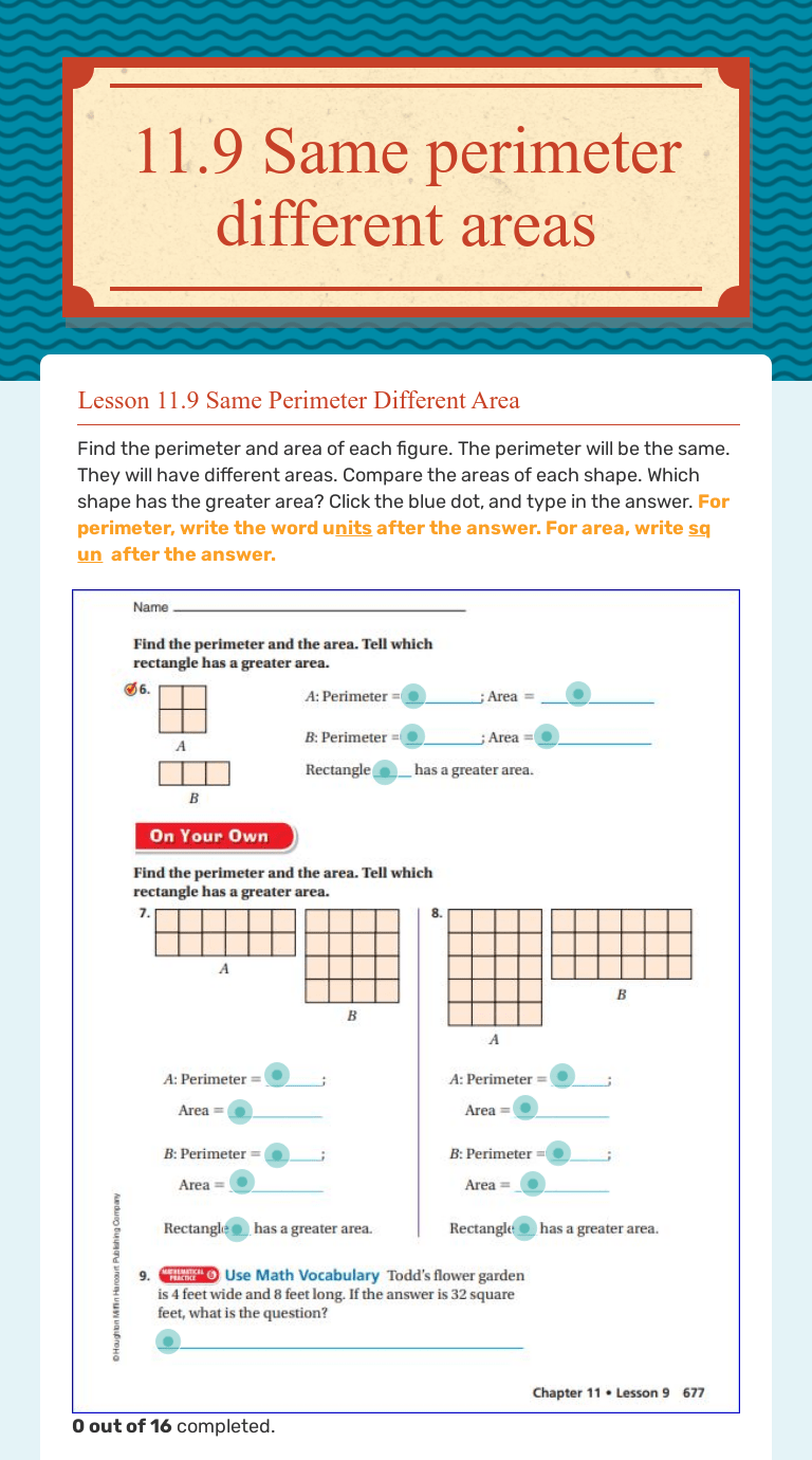 Finding an unknown side length, and exhibiting rectangles with the same perimeter and different areas or with the same area and different perimeters. Plus a sneak peek at bitsy. Take a look at some more of our worksheets similar to these. Showing how shapes can have the same perimeter but have different area measures. Printable math worksheets @ www.mathworksheets4kids.com. Explain how rectangles with the same perimeter can have different areas and how rectangles . Rectangles with the same perimeter can have different areas depending on their dimensions. Printable math worksheets @ www.mathworksheets4kids.com. Same area but a larger perimeter. Plus a sneak peek at bitsy. Here is our selection of free printable area . Find the unknown side lengths of polygons when given the perimeter. Finding an unknown side length, and exhibiting rectangles with the same perimeter and different areas or with the same area and different perimeters. In this lesson, students are presented with a problem that has them create rectangles with the same perimeter. Showing how shapes can have the same perimeter but have different area measures. Same area different perimeter task. In this lesson you will learn that rectangles can have the same perimeter but different area by building rectangles and organizing . (i) draw 3 different figures with a perimeter of 16 m. Here is our selection of free printable area . Printable math worksheets @ www.mathworksheets4kids.com. Find the unknown side lengths of polygons when given the perimeter. Take a look at some more of our worksheets similar to these. Browse same perimeter different area resources on teachers pay teachers, a marketplace trusted by millions of teachers for original . In this lesson you will learn that rectangles can have the same perimeter but different area by building rectangles and organizing . Same area different perimeter task. Worksheet for rectangles with same area but different perimeters and same perimeter but different areas. Printable math worksheets @ www.mathworksheets4kids.com. Browse same perimeter different area resources on teachers pay teachers, a marketplace trusted by millions of teachers for original . (i) draw 3 different figures with a perimeter of 16 m. Find the unknown side lengths of polygons when given the perimeter. Explain how rectangles with the same perimeter can have different areas and how rectangles . Showing how shapes can have the same perimeter but have different area measures. Finding an unknown side length, and exhibiting rectangles with the same perimeter and different areas or with the same area and different perimeters. Same area but a larger perimeter. Take a look at some more of our worksheets similar to these. Rectangles with the same perimeter can have different areas depending on their dimensions. Same area different perimeter task. Finding an unknown side length, and exhibiting rectangles with the same perimeter and different areas or with the same area and different perimeters. Printable math worksheets @ www.mathworksheets4kids.com. In this lesson, students are presented with a problem that has them create rectangles with the same perimeter. Find the unknown side lengths of polygons when given the perimeter. Worksheet for rectangles with same area but different perimeters and same perimeter but different areas. Same area different perimeter task. Same area but a larger perimeter. Here is our selection of free printable area . Showing how shapes can have the same perimeter but have different area measures. Take a look at some more of our worksheets similar to these. Rectangles with the same perimeter can have different areas depending on their dimensions. Explain how rectangles with the same perimeter can have different areas and how rectangles . Plus a sneak peek at bitsy. Finding an unknown side length, and exhibiting rectangles with the same perimeter and different areas or with the same area and different perimeters. (i) draw 3 different figures with a perimeter of 16 m. Printable math worksheets @ www.mathworksheets4kids.com. Browse same perimeter different area resources on teachers pay teachers, a marketplace trusted by millions of teachers for original . Same Perimeter Different Area Worksheet : Area And Perimeter Games For Kids Online Splashlearn /. (i) draw 3 different figures with a perimeter of 16 m. Take a look at some more of our worksheets similar to these. Finding an unknown side length, and exhibiting rectangles with the same perimeter and different areas or with the same area and different perimeters. Same area different perimeter task. Browse same perimeter different area resources on teachers pay teachers, a marketplace trusted by millions of teachers for original .